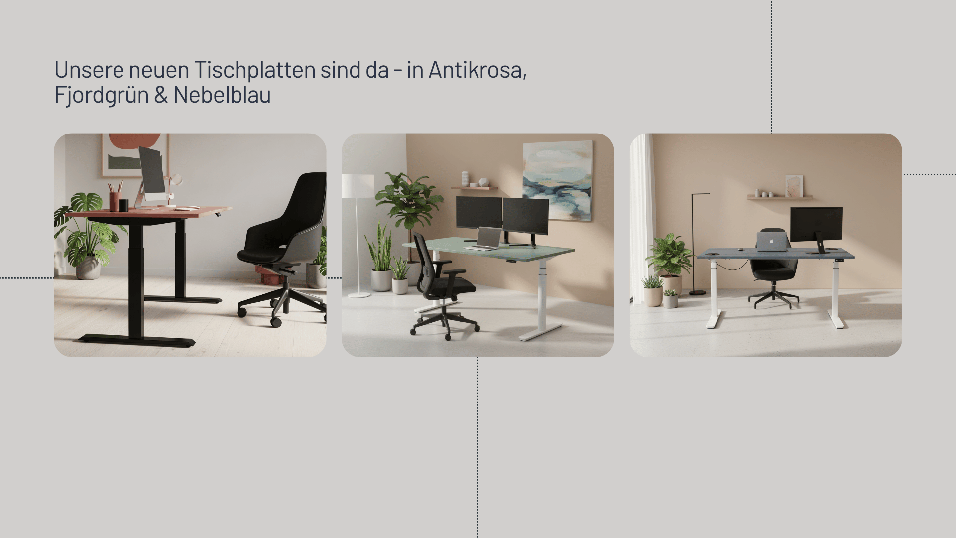 Farben im Homeoffice sind weit mehr als nur Dekoration. Sie beeinflussen unmittelbar, wie fokussiert und motiviert du bei der Arbeit bist und wirken sich direkt auf dein Wohlbefinden aus. Mit Antikrosa, Fjordgrün und Nebelblau greifen wir genau die aktuellen Interior-Trends auf – kombiniert mit der Funktionalität, die ein moderner Arbeitsplatz braucht.